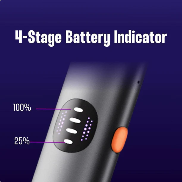 A clear four-level battery display allows you to monitor the battery status at a glance, ensuring it's always fully charged when needed.